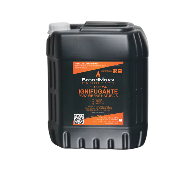 O Ignifugante BroadMaxx Concentrado é um retardante de chamas com as mesmas garantias, rendendo 10L após diluição.